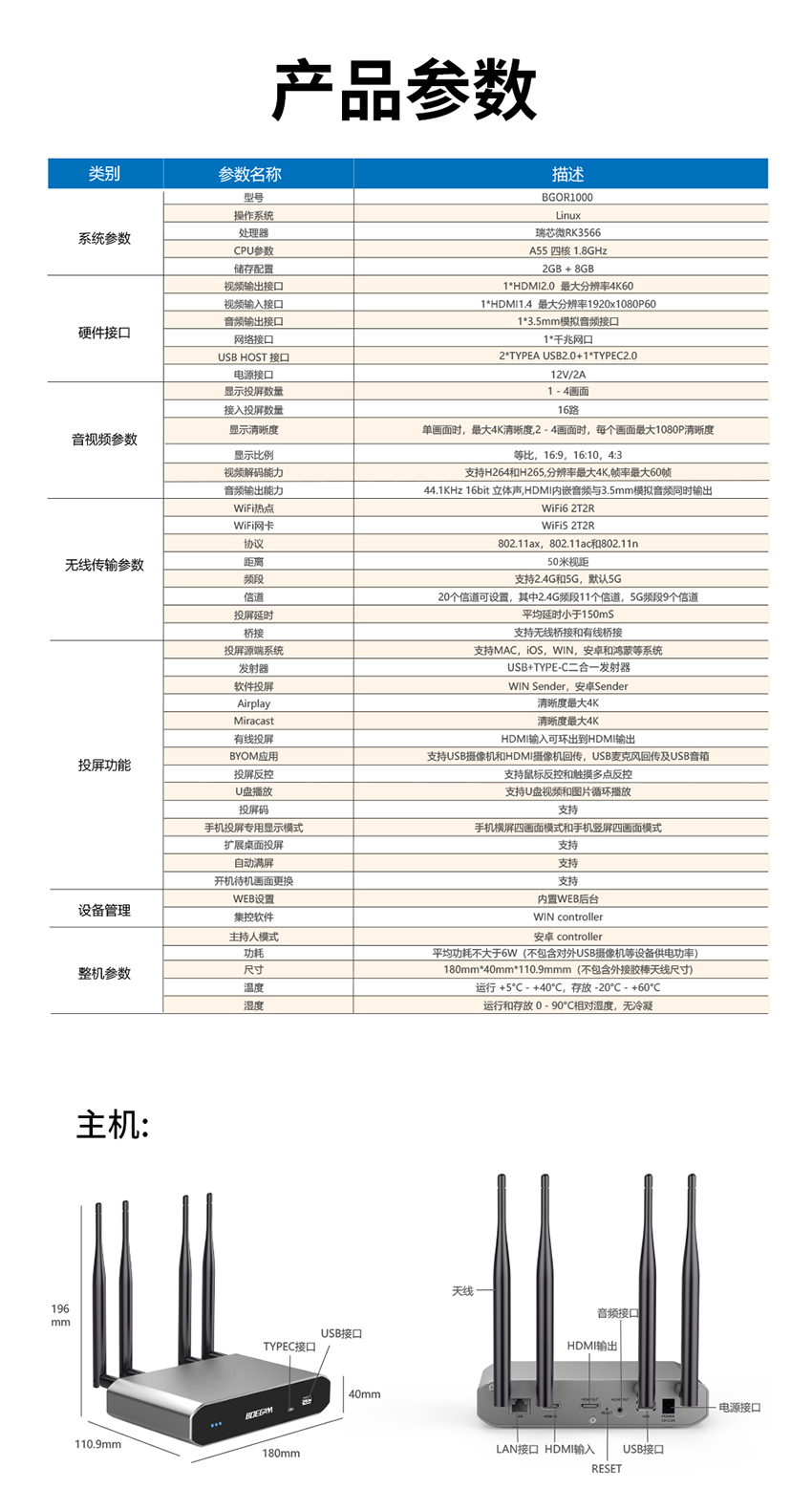 2.WiFi热点:WiFi6,2T2R,外置双天线,距离50米